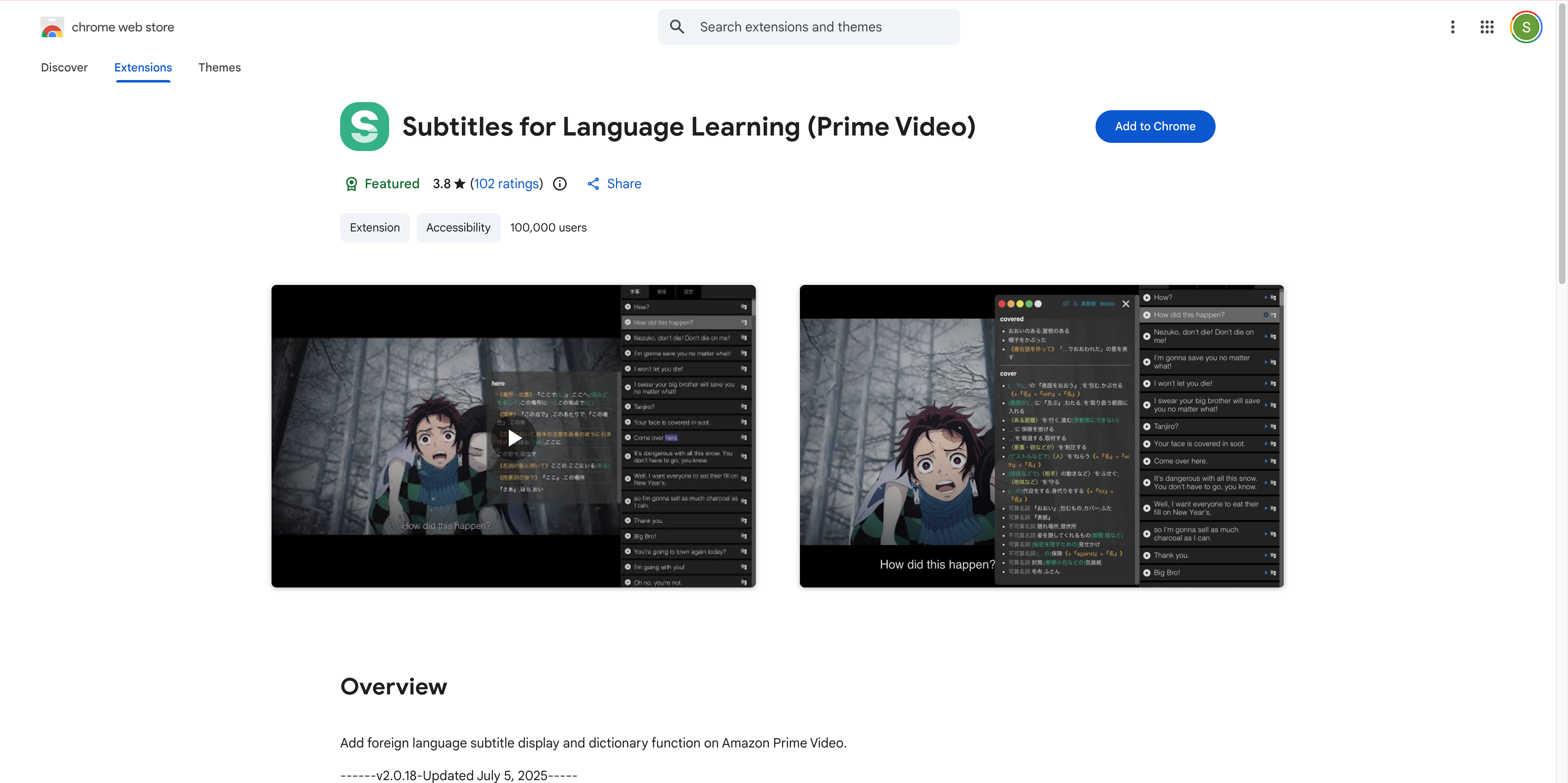 Subtitles for Language Learning 是一款可在 Amazon Prime Video中使用的英语字幕工具。