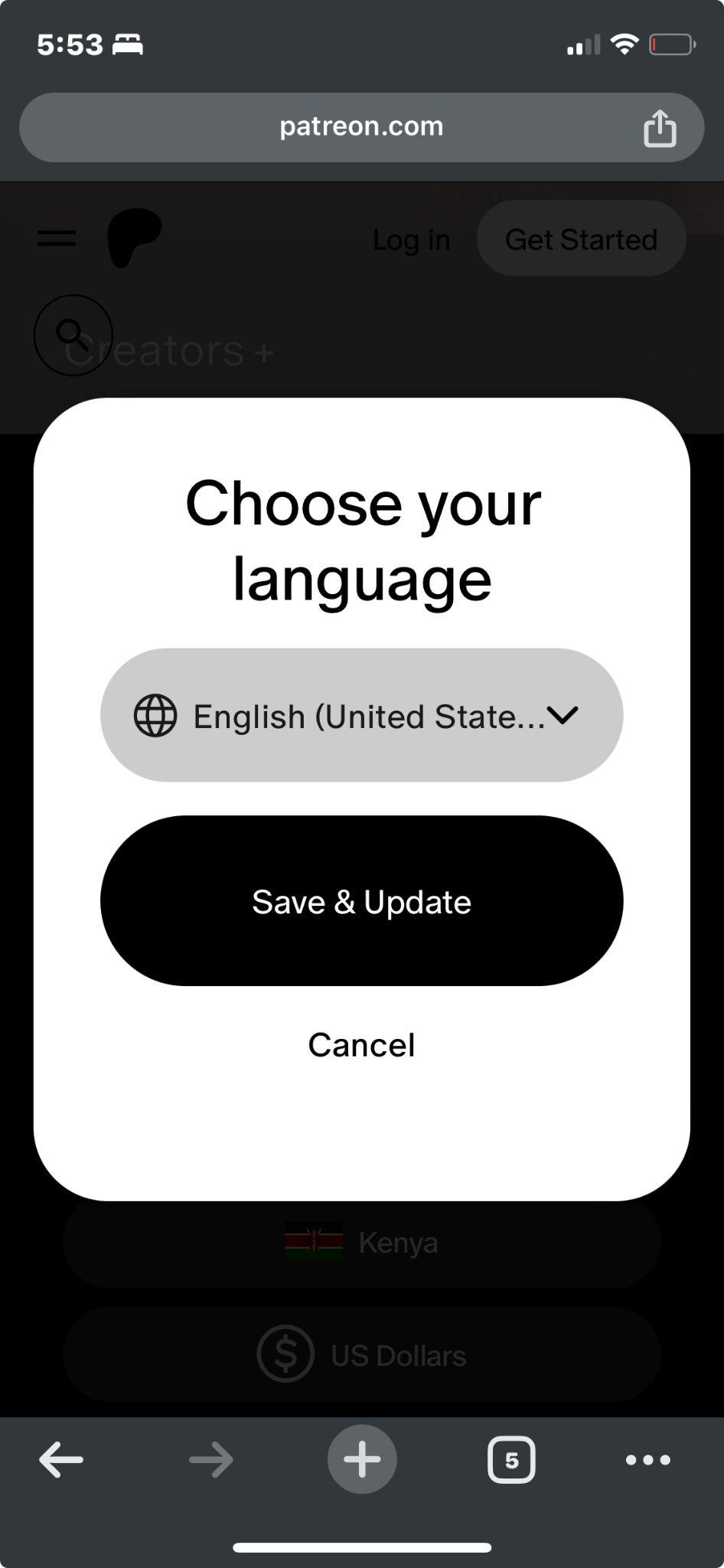 - 之前的用户设置:很可能沿用你上次使用 Patreon 时选择的语言;若共用设备,则会使用之前设定的语言。