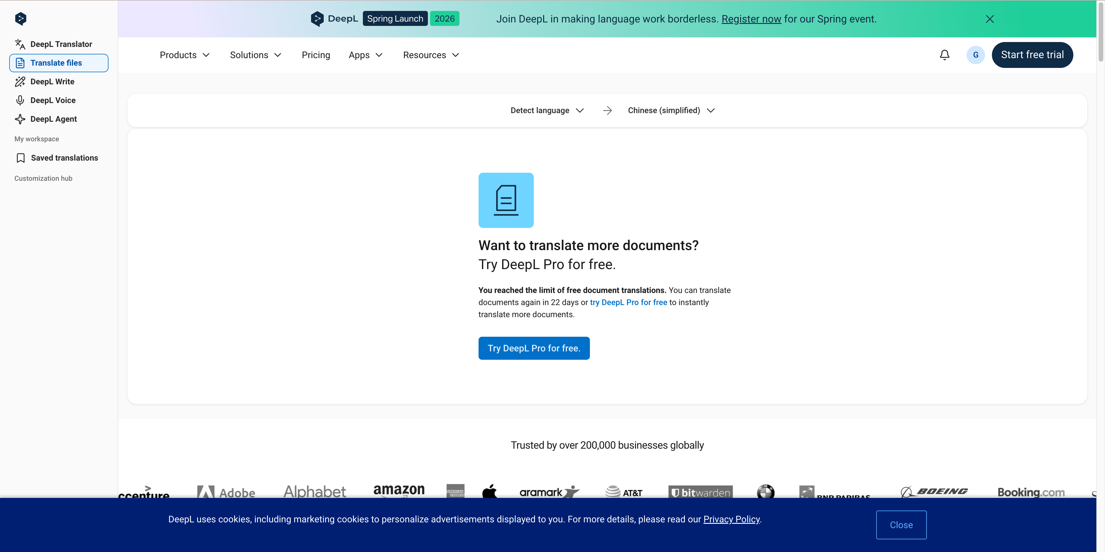 - 免費文件翻譯次數有限,不少使用者反映約每 30 天僅能免費翻譯一次完整文件