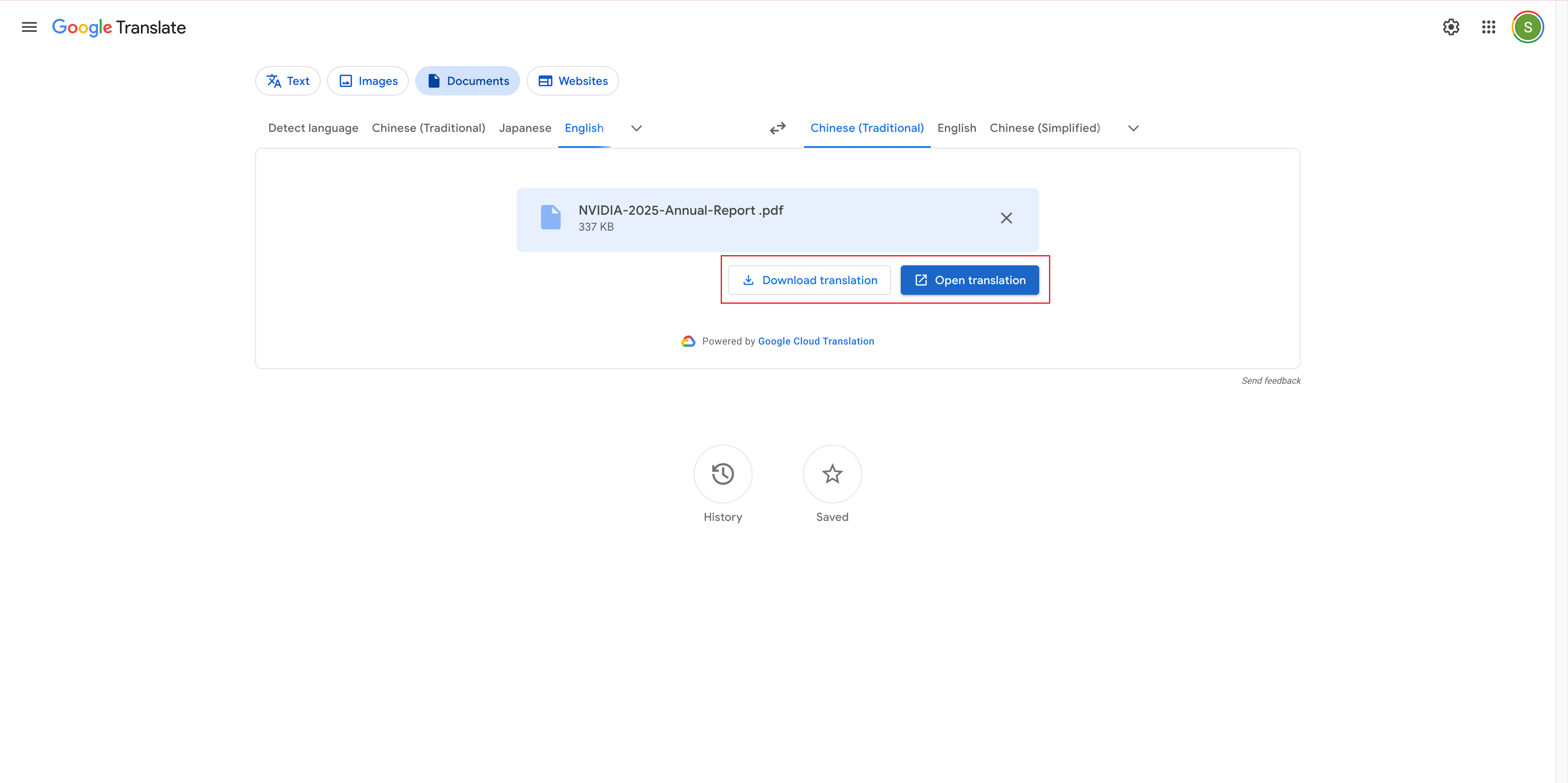 - 翻譯完成後,可選擇下載翻譯後的英文年報翻譯檔案