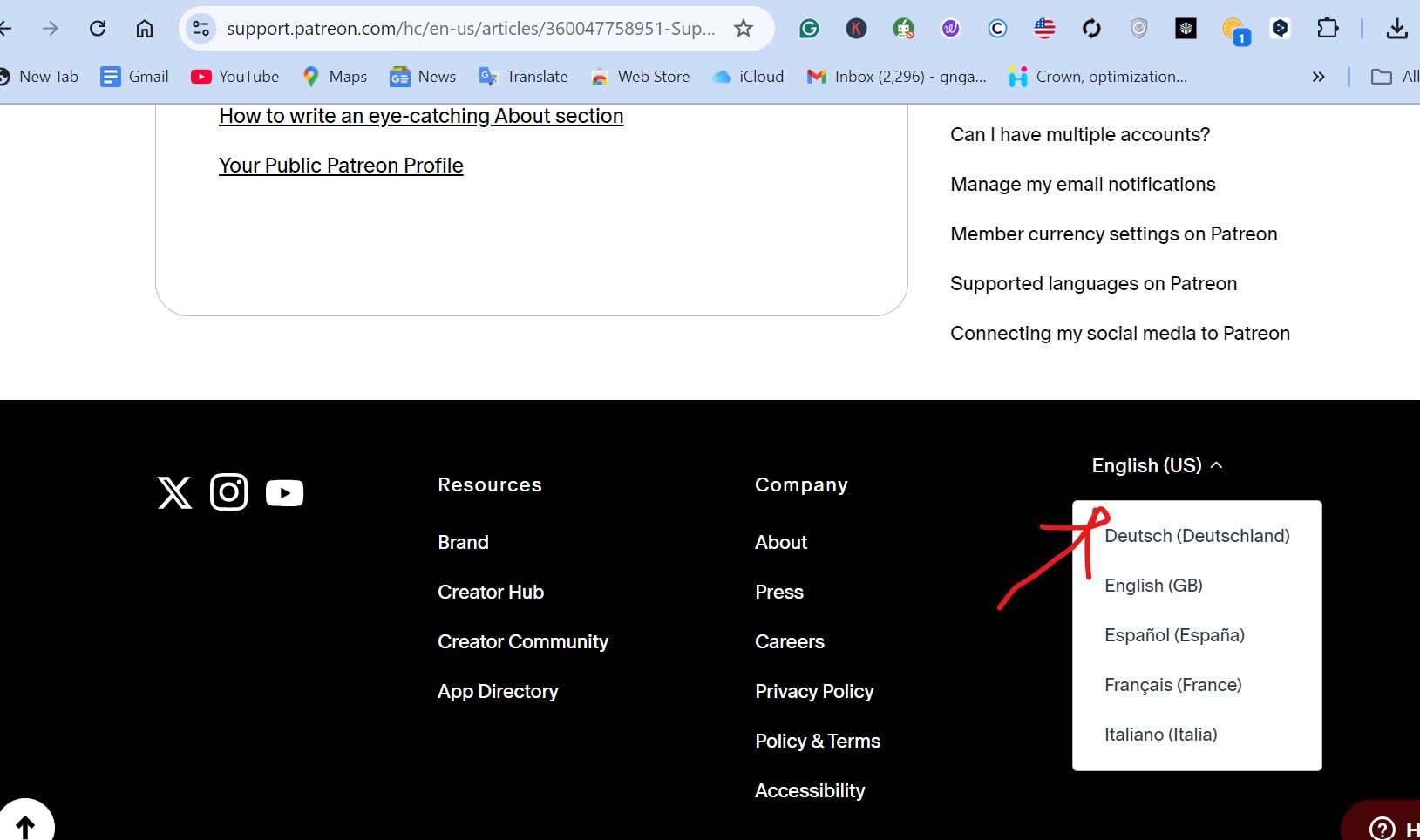 如何在 Patreon 更改语言