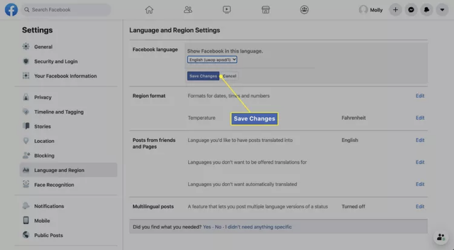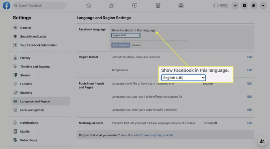 如何更改 Facebook 的语言设置?