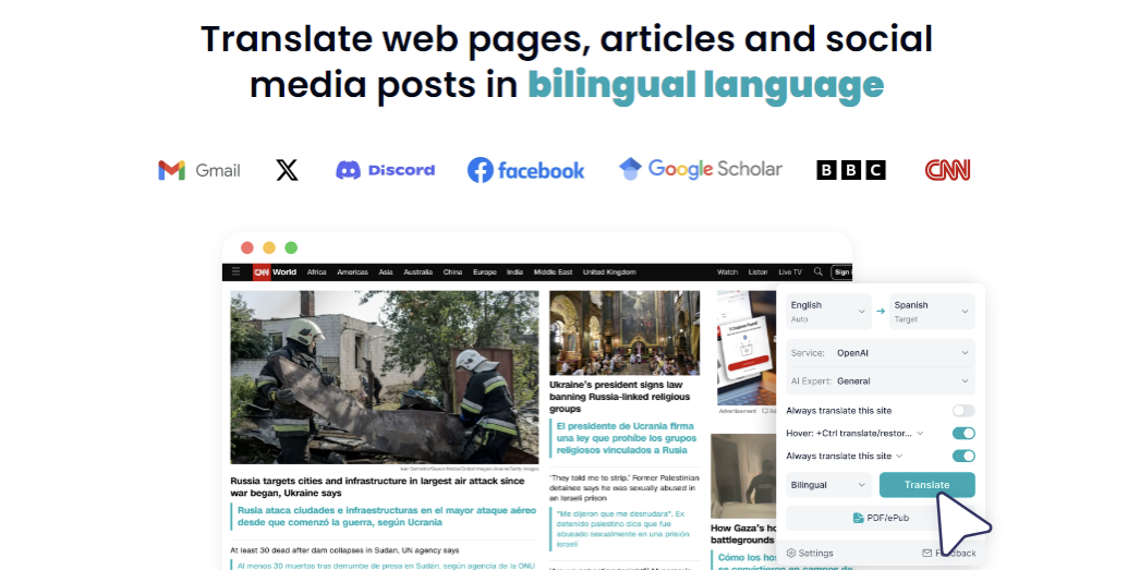 对于需要双语方案的用户,DeepTranslate 提供可同时将页面翻译成两种语言的功能。这对在 Facebook 上进行多语言讨论或研究的用户尤其有用。无论你是在 Facebook Messenger 中翻译还是在翻译帖子,DeepTranslate 的双语页面功能都能让你以两种语言查看内容。DeepTranslate 可翻译: