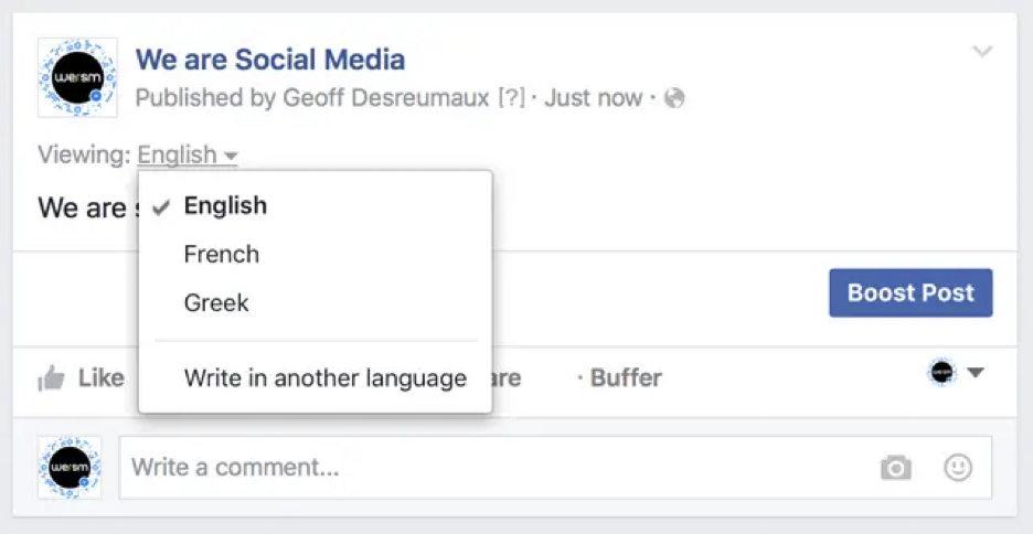 - 随后 Facebook 会使用其默认翻译器翻译该帖子或评论。